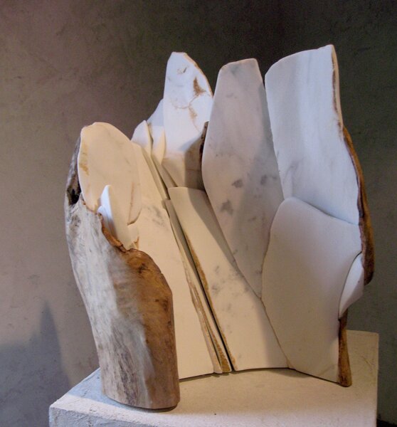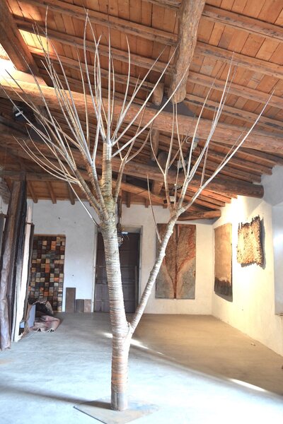 Nel 1986 inizia l'attività di pittore e scultore scenografo al Teatro Regio di Parma, incarico che dura fino al 1991. In questi anni matura un rapporto di conoscenza e famigliarità con le materie prime – il legno, la pietra, il ferro, la carta, la resina – delle sue future sculture. Nel 1990 interrompe l'attività didattica per dedicarsi completamente alla ricerca scultorea. L'immaginario paleontologico che origina dagli studi e dalle ricerche sul campo, gli anni di pratica con lo spazio teatrale, la didattica e il restauro, l'imprinting nella manipolazione dei materiali che risale agli anni di bottega con il padre, falegname, costituiscono le garanzie artigianali di fondo, la struttura febbrile del suo genio creativo.