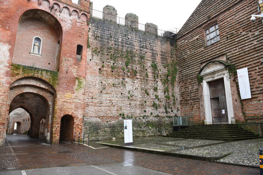 Santa Maria della Torresino, dalla torre cui è addossata che le fa da campanile, è nominata nei documenti fin dal secolo XV, ma è tradizione che essa sia stata costruita contemporaneamente al castello, la prima Chiesa dentro la cerchia murata, per gli uomini d’arme che la presiedevano. Recentemente se ne è avuta la conferma perché, rimuovendosi il pavimento, sono venute alla luce fondazioni che si ha motivo di ritenere fossero quelle dell’antico edificio, che era di modeste dimensioni se misurava poco più di 12 metri di lunghezza. Anche la destinazione della Chiesa, legata alle vicende del castello, è avvalorata dei santi onorati nei tre altari di quella primitiva ancora secoli dopo, nel 1605; infatti, uno portava la Deposizione del Bastiani ora in sagrestia, un altro era dedicato a San Sebastiano nel cui giorno si faceva festa e nel terzo vi era onorato San Rocco al quale si rivolgevano i feriti e chi aveva piaghe da curare. Le visite pastorali nominano sempre la chiesa del Terresino e da esse si rileva che lentamente, con lo scorrere del tempo, le devozioni in essa praticate si adeguano alle mutate condizioni dell’ambiente.