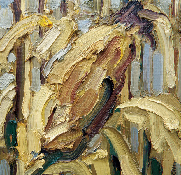 Dichiaratamente ambientalista, per le sue opere sceglie prevalentemente soggetti naturali, semplici, quotidiani, come nature morte e paesaggi. Lavora sempre a olio su tela con un impasto grasso e policromo.