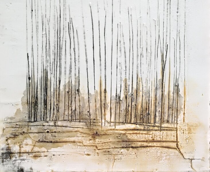 Inizia di fatto il l suo percorso artistico dopo l’incontro del tutto casuale con un arista greco che gli insegna a modellare la ceramica ed ad accostare alla semplice argilla smalti colorati per costruire soluzioni e forme in un connubio di geometrie policrome. Da queste prime esperienze ne nasce una vera e proprio passione che lo vede impegnato nella frequentazione di diversi corsi specialistici per apprendere tutte le varie tecniche di lavorazione delle ceramiche e delle argille, per conoscere le caratteristiche, le particolarità ed i procedimenti per il trattamento dei vetri e degli svariati ossidi per la loro colorazione. Apprende in questo periodo anche le tecniche di cottura ed ha una particolare passione per la tecnica arte giapponese del Raku, per lui tuttora fonte di ispirazione. La conoscenza delle pratiche di lavorazione, dei materiali, la curiosità e la volontà di sperimentare soluzioni materiche sempre diverse e originali lo spingono a ricercare nuove creazioni ottenute utilizzando accostamenti diversi. Dal vetro colorato fuso su terracotta sperimenta le resine su basi e supporti diversi come il legno, il plexiglass, il vetro, la plastica e la tela di juta. Reinterpreta personalizzando tecniche antiche come il cracklè utilizzando e combinando però materiali diversi e a volte inusuali, nella continua ricerca di effetti unici e sorprendenti. Su supporto di juta usa gessi, argilla e resine, ma anche pigmenti puri e colori naturali ottenuti da vegetali come il cacao, la curcuma, il caffè. Sperimenta ed usa polvere di metalli fatti ossidare direttamente sulla juta con acidi, ottenendo effetti cromatici intensi e profondi. Trae la sua ispirazione spesso dall’osservazione dei paesaggi campestri o da particolari e dettagli di poca importanza che incontra nella vita di tutti i giorni come per esempio vecchi muri, muffe, oggetti comuni o una semplice crepa nell’asfalto.