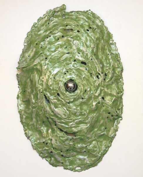 Il marmo puro costituisce la “materia scultorea per eccellenza”, con le sue tipologie distinte per le varietà cromatiche, per la grafia delle venature, per le tracce fossili e per i segni delle stratificazioni. Si tratta di un percorso nel passato in cui blocchi e lastre di marmo vengono sbozzate e scalfite con tagli vivi esprimendo la fisicità della materia scabra, dalla quale emergono levigati simboli originari o immagini di figure femminili come antiche veneri preistoriche. Nella produzione piùrecente, la ricerca di Maurizio Rossetto si è spinta verso un’esaltazione delle potenzialità dei metalli. In particolare nelle Fusioni, l’alluminio viene lavorato, plasmato, modellato sotto l’azione della fiamma ossidrica e della forza gestuale dell’artista che deve governare il movimento della materia. Le forti tensioni verticali, gli sviluppi spiraliformi, i moti vorticosi sembrano nascere e generarsi spontaneamente di fronte all’osservatore sempre in relazione al punto focale rappresentato dal nucleo riflettente quale principio generatore di ordine e di armonia.