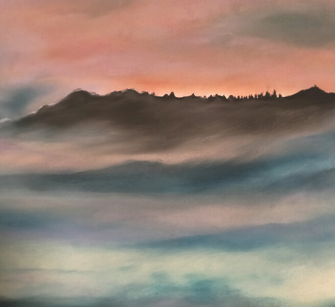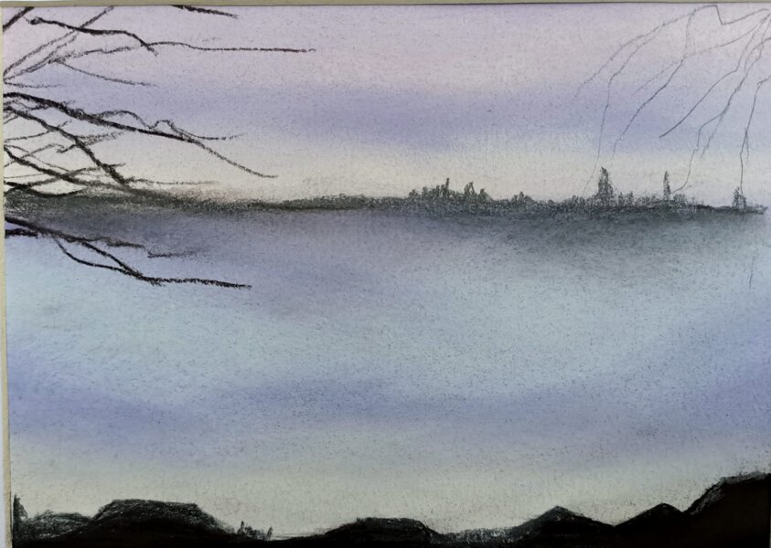 L’artista friulana MIlena Miculan predilige la tecnica del pastello secco per narrare i suoi paesaggi che assomigliano più a luoghi dell’anima che non a posti reali, o comunque frammenti visivi filtrati dalla sua sensibilità, dal suo approccio poetico nel percepire ciò che ruota intorno a sé e che lo sguardo coglie; unisce la meraviglia dei panorami incastonati nella sua memoria, molto vicini allo stile del Romanticismo per quel suo cogliere la grandezza della natura, dell’acqua e del cielo che contribuiscono ad accogliere l’uomo facendogli al tempo stesso percepire la sua caducità, il carattere temporaneo e fugace della sua esistenza che viene sottolineata dalla presenza perpetua e dal costante ripetersi e avvicendarsi delle stagioni e dei fenomeni atmosferici.