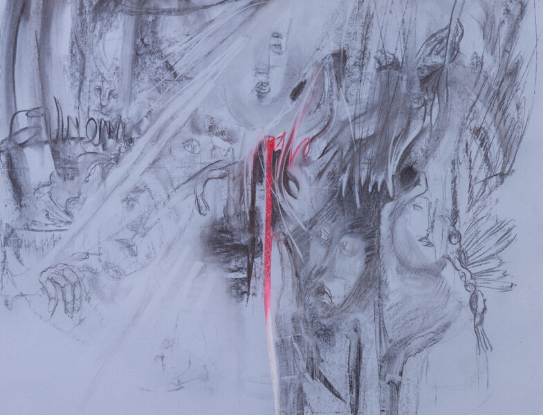 Dal 2023 l’interesse mai svanito per il corpo e il nudo la portano all’atelier di Franco Chersicola, pittore triestino che, come Perizi, usa il carboncino ma su fogli più grandi dove “è facile perdere le coordinate interiori”. Con lui si focalizza sul gesto, sull’anatomia, e sulla struttura della composizione.