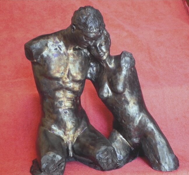 I suoi primi approcci alla creatività si esprimono con la pittura ed il fascino del colore, dipingendo tele di paesaggio e anche di figura. Solo da poco scopre la predilezione ed il fascino per la forma totale, la scultura, che lo rapisce totalmente dedicandovi tutto il tempo con interesse, studio e lavoro. La sua capacità di realizzare i modelli di aereo d’epoca o nuovi, partendo dal progetto, è un’esperienza sulla quale ha lavorato per tan- to tempo tanto da diventare una professione, in quel caso la forma inseguiva l’efficienza, in questo frangente invece i suoi progetti di scultura diventano l’elemento principe, sia per l’aspetto anatomico sia per il gesto dinamico che per l’equilibrio formale. Il soggetto scultoreo che l’artista predilige è la figura dell’uomo, nei suo momenti di vita semplice o epica, portandoci a riflettere sulla nostra fragile posizione. Chiedersi dunque cosa sia la sua Arte ed in quale corrente collocarla, in questo momento storico credo sia persino superfluo, quello che importa invece è la sua sana e vera tensione dell’“essere creativo” per Paolo infatti è l’insieme di tutto questo, l’idea, lo studio della forma, la scelta dei materiali e le loro combinazioni sono dunque “progetto totale“.