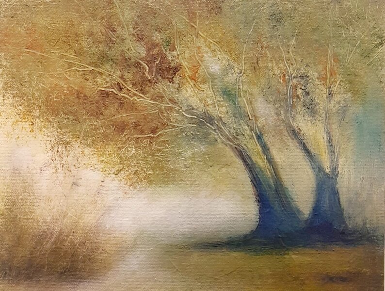 Il tempo, ci appare inevitabilmente sospeso, una sensazione accentuata dal sapiente uso della luce che pervade, spesso soffusa e quasi umida, queste opere. La pittrice, nel riprodurre gli elementi naturali in un perfetto equilibrio compositivo, utilizza inusuali e ricercati effetti acquarellati, per la pittura ad olio che predilige, frammisti a matericità, dense e concitate. Sono vedute quasi evanescenti, dove i confini appaiono impercettibili e l’orizzonte indefinito in una fusione morbida di gradazioni cromatiche.