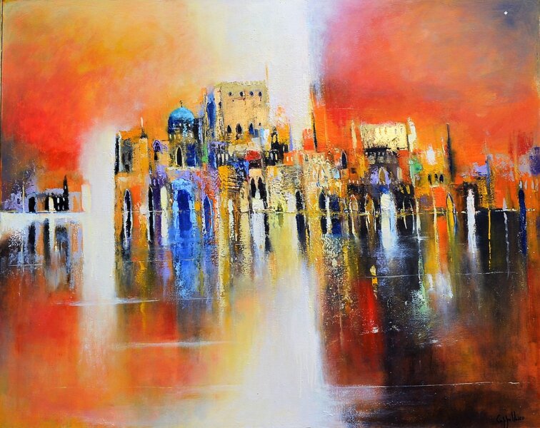 Macchie di colore e linee si coagulano e vibrano tra di loro, dando vita ad opere dove l'irreale e il reale si confondono e si amalgamano in un insieme caratterizzato da un forte equilibrio sia formale sia interiore, rotto talvolta da "lampi" colorati ricchi di forte carica interiore e di pulsante vitalita' che si stagliano sugli altri, talvolta da linee piu' marcate che sembrano, nel loro scorrere continuo per tutto il dipinto, tracciare percorsi mentali ed ideali. Queste creazioni per la loro complessita' intellettuale e per il loro indagare nella psiche umana catalizzano l'osservatore che in esse vi puo' leggere riflesse come in uno specchio, oltre a quelle del pittore, le proprie emozioni e le proprie paure inconscie. Pittore poliedrico, oltre all'astrattismo, dipinge anche paesaggi che attraggono per il loro "strano" potere: sfumate ed oniriche visioni di architetture, emergenti da trasognate atmosfere, fatte da vibrazioni architettoniche e cromatismi da tratti arabeggianti, ci conducono magicamente in un fascinoso viaggio immaginario o reale verso luoghi lontani fermi nel tempo, che rievocano alla memoria fatti e avvenimenti che perdono nello scorrere lento ed inarrestabile della storia.