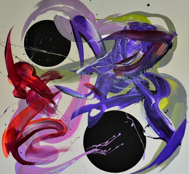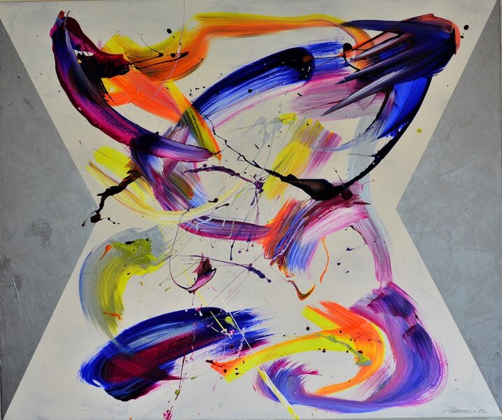 “L’osservazione della realtà si traduce in forme astratte, semplificando e riducendo gli oggetti alla loro natura intrinseca primaria di questo si alimenta l’arte pittorica di Riccardo Passuello, sfondando lo spazio circoscritto della tela nell’accensione dei toni, e nei guizzi del gesto che irrompono oltre le trattenute geometrie”. Dott.ssa Maria Palladino