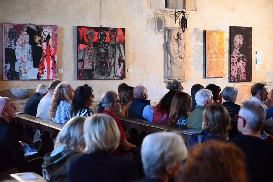 Il grande affresco sulla parete est del chiostro ha conosciuto un’attribuzione “popolare” a Giotto ma i critici moderni sono propensi nel riconoscere Dario da Treviso del 1460 come autore.