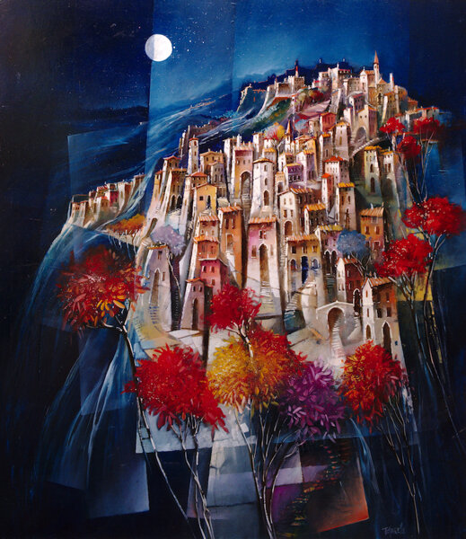 Una pittura moderna nel taglio come surrealismo cromatico, in cui la forza dell'emozione viene marcata dalle spatolate veloci che aprono l'opera, lasciano più spazio al colore senza una necessaria determinazione del sogno. Sono note che creano suspense, in cui le connotazioni si ripetono nel dualismo tra l'irrealtà dell'immagine nella quale si recuperano le distinzioni del reale.
