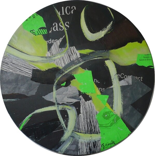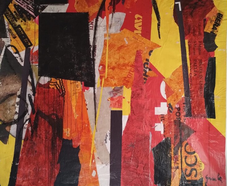 La pittura informale le consente di uscire dal perimetro condizionante della figura e di esprimersi con tecniche miste utilizzando superfici ottenute dall’assemblaggio di colore e collage.